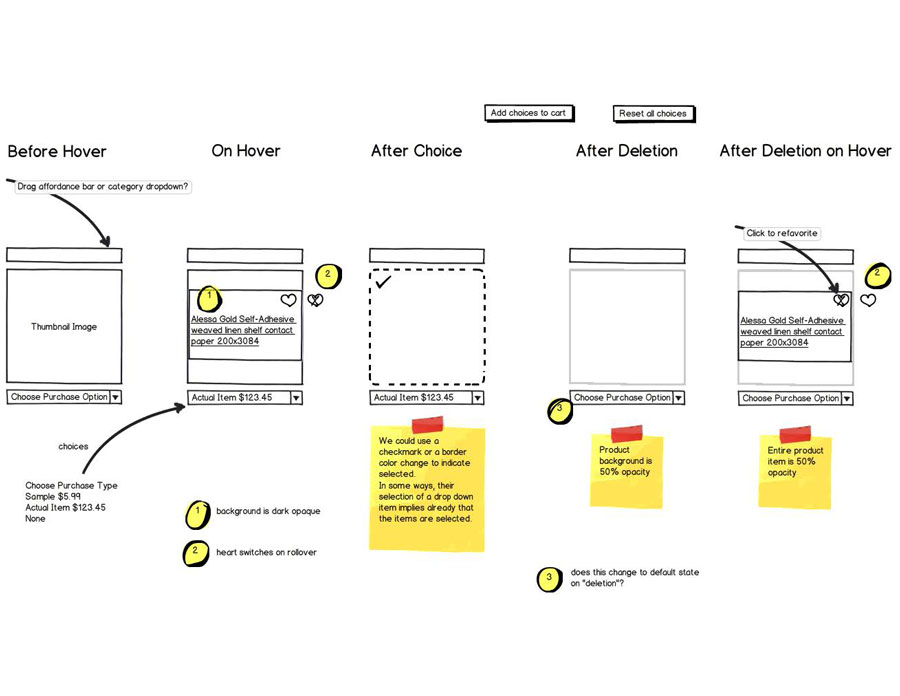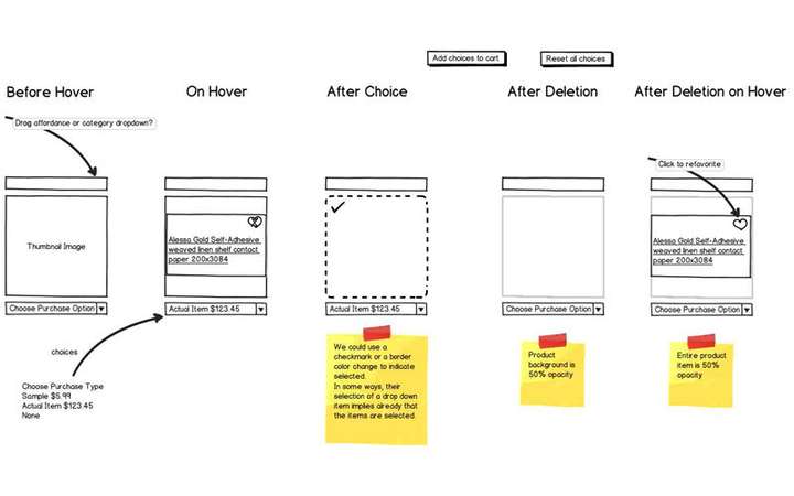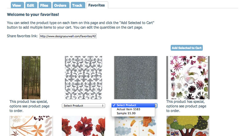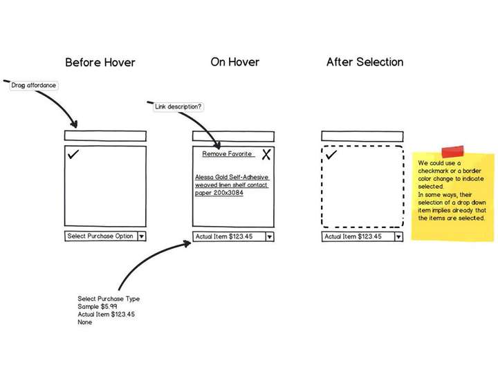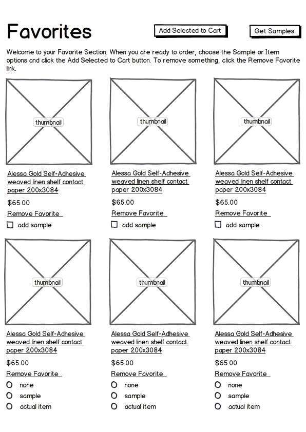 An in-context ability to favorite and manage items was included in the Product thumbnails, the Customer Account area and a foldout Sidebar area.