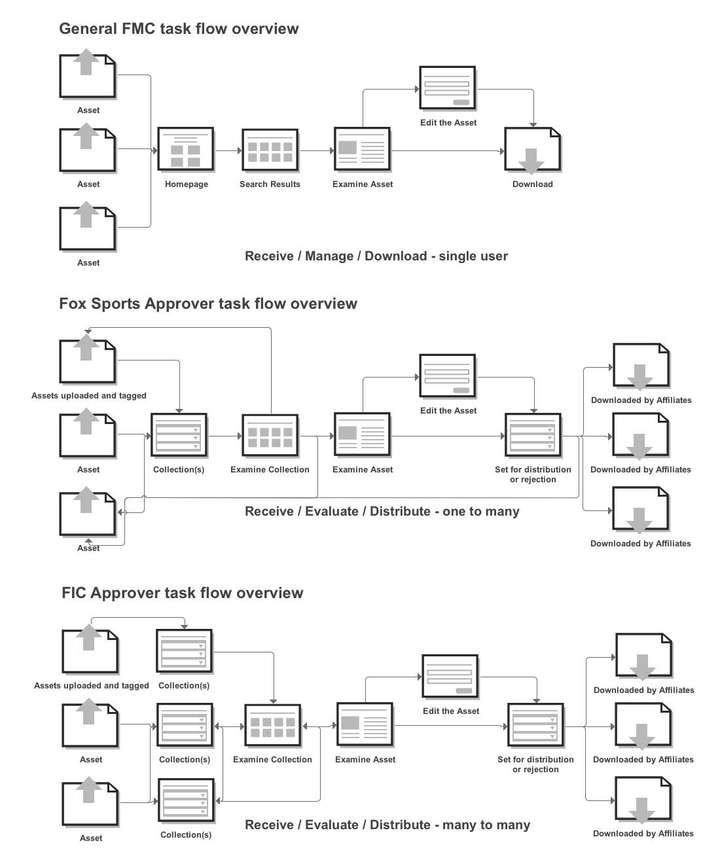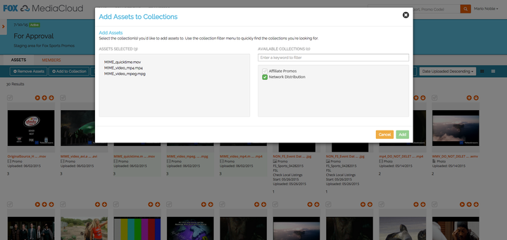 An online Angular/Bootstrap .NET based application was developed to manage the media assets, which included curation and automatic affiliate access to assets when they were ready. A decision was made to brand the login page with Sports brands and use the new general FOX MediaCloud branding once inside.